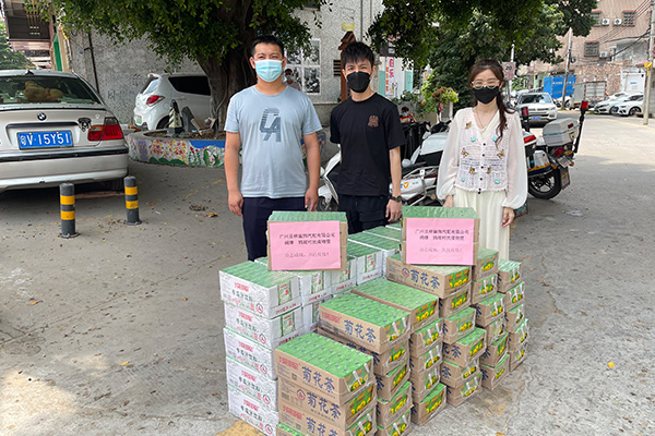 Guangzhou Chengxiang Decoration Car Accessories Co. ، Ltd. تبرع 150 كرتون يشربون في قرية ياهو وقرية داكسيانغ ضد كوفيد 19 في 15 أبريل 2022.